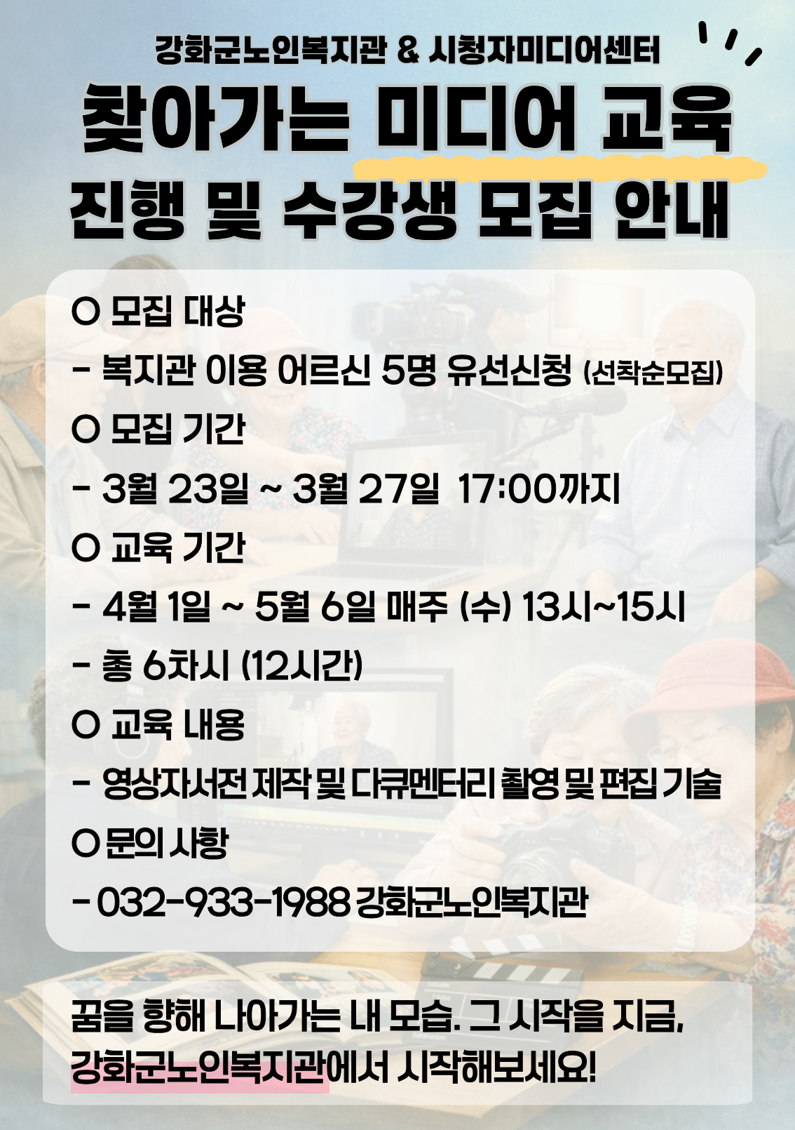 찾아가는 미디어 교육 진행 및 수강생 모집...