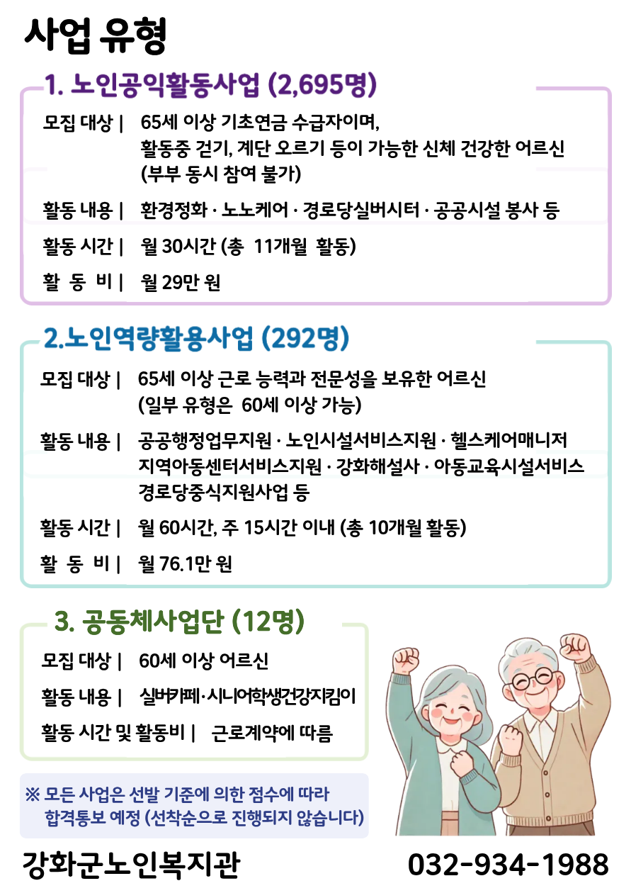 강화군노인복지관에서 2026년 노인일자리사업 참여자를 모집하고 있습니다.