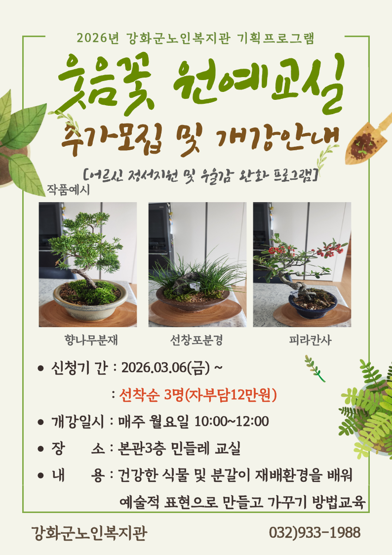웃음꽃 원예교실 추가모집 및 개강안내