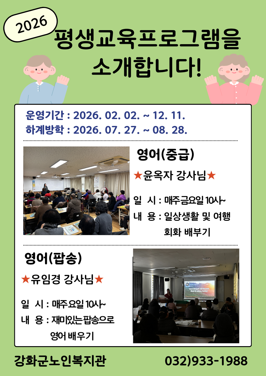 2026년 강화군노인복지관 3월 신입회원 오리엔...