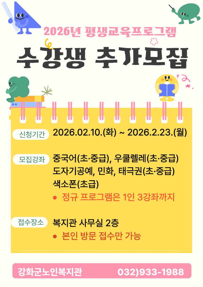 2026년 평생교육프로그램 수강생 추가모집...