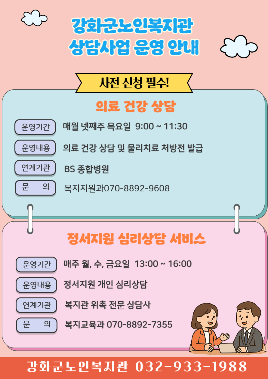 강화군노인복지관 상담사업 운영 안내