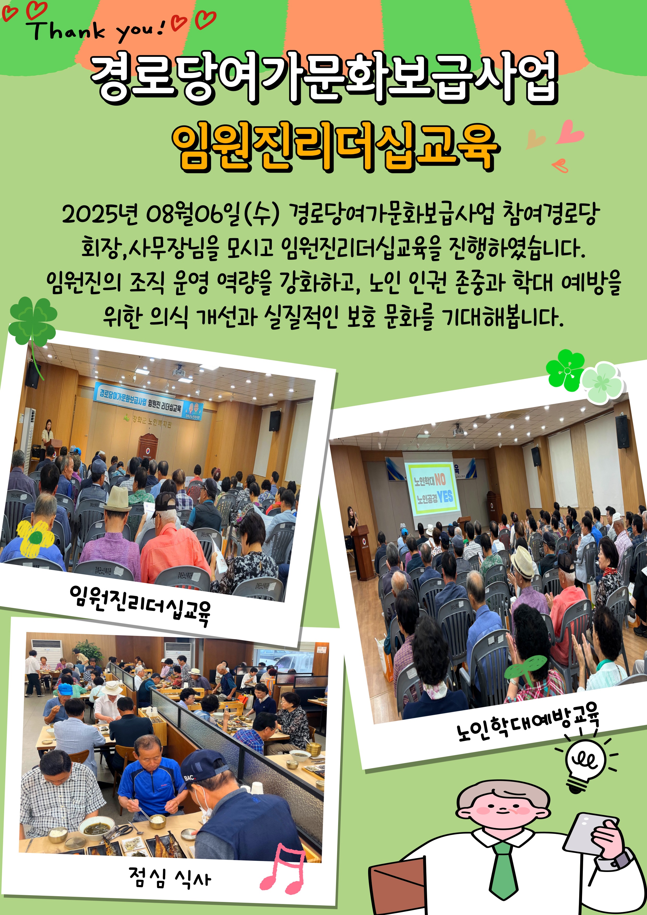경로당여가문화보급사업 8월6일 임원진리더십교...