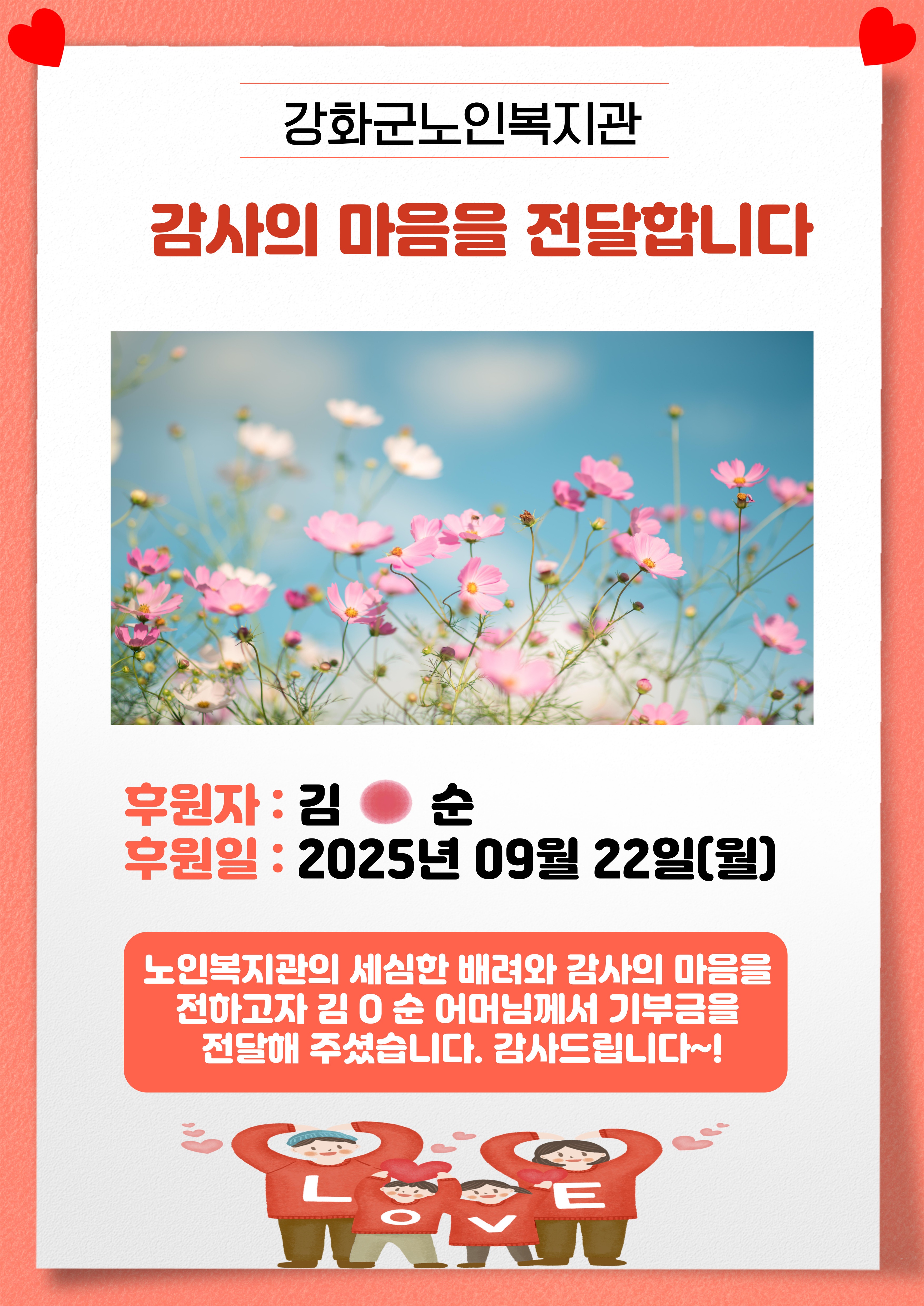 김 * 순 어머니께서 후원금을 전달해주셨습니다.