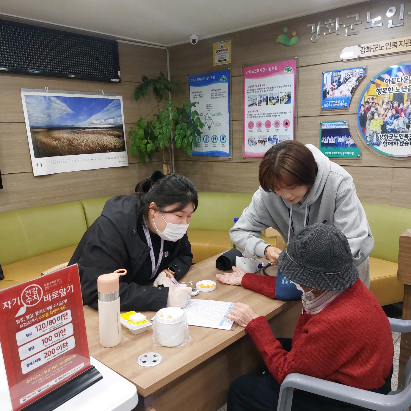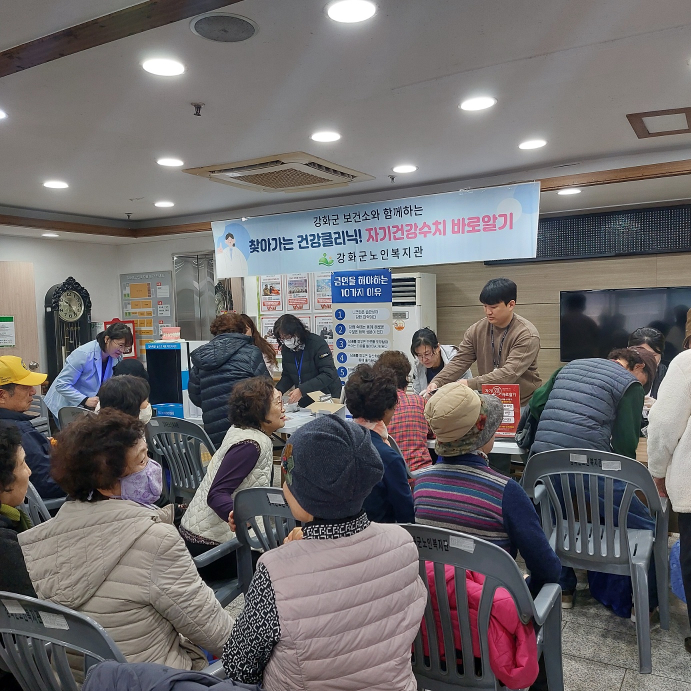 11월 25(화) 건강보건증진사업에서는 강화군 보건소 방문간호팀과 연계하여 건강 클리닉(4분기) & 구강체험부스를 운영하였습니다.