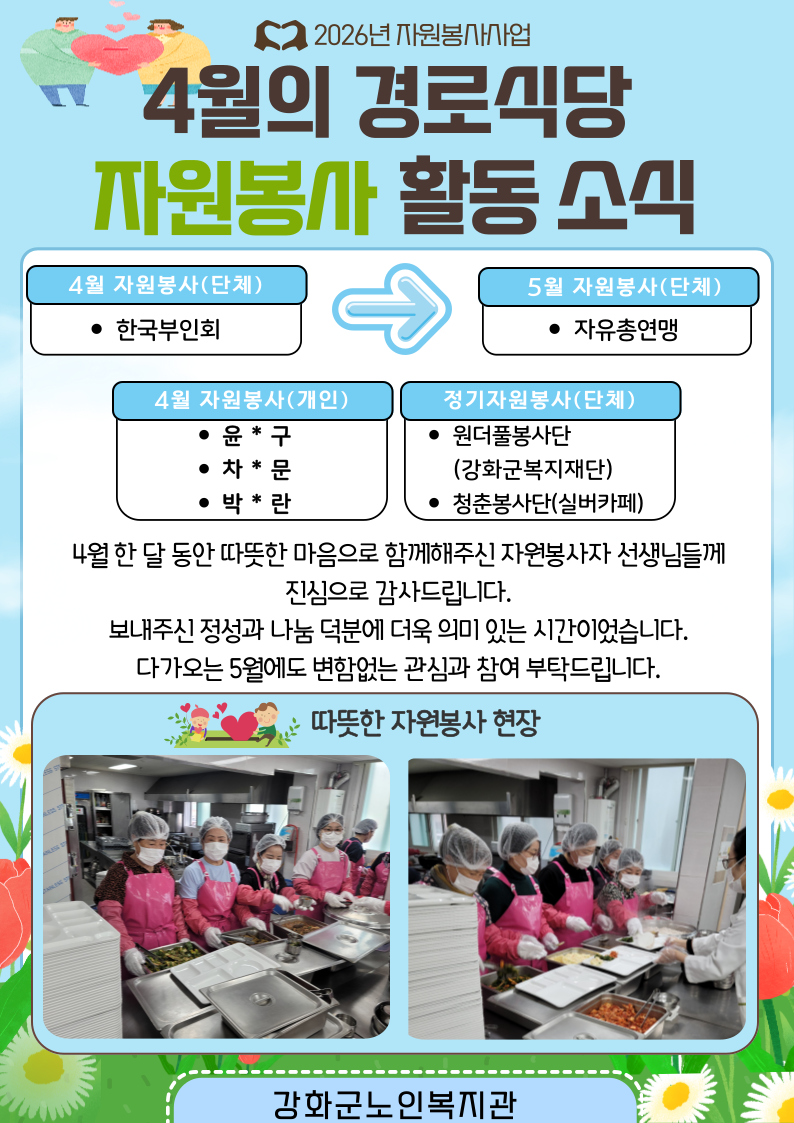 4월에도 많은 단체와 개인 자원봉사자 선생님들께서 수고해주셨습니다.