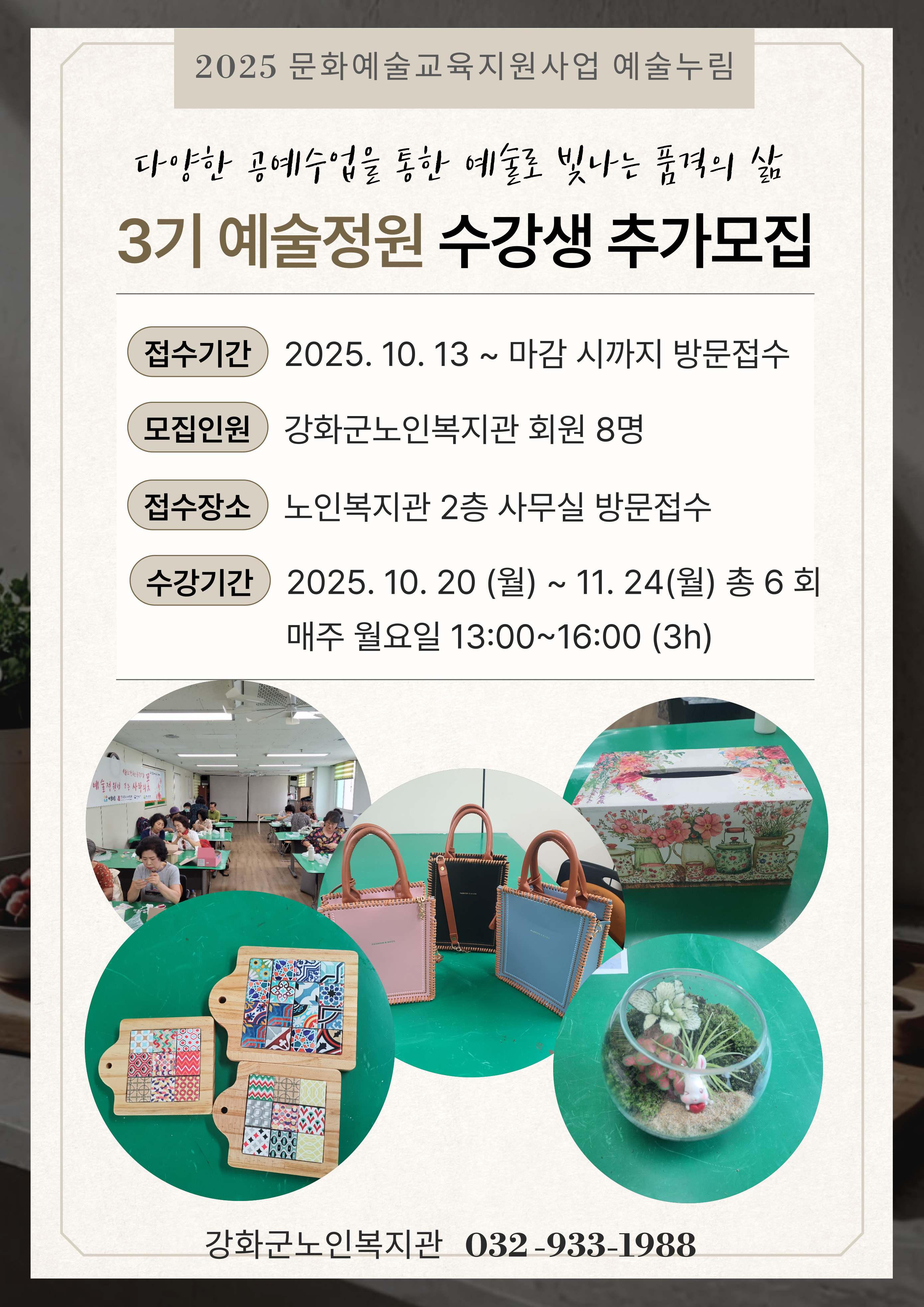 2025 문화예술교육지원사업 예술누림 프로그램 예술정원 3기 수강생을 추가모집합니다!