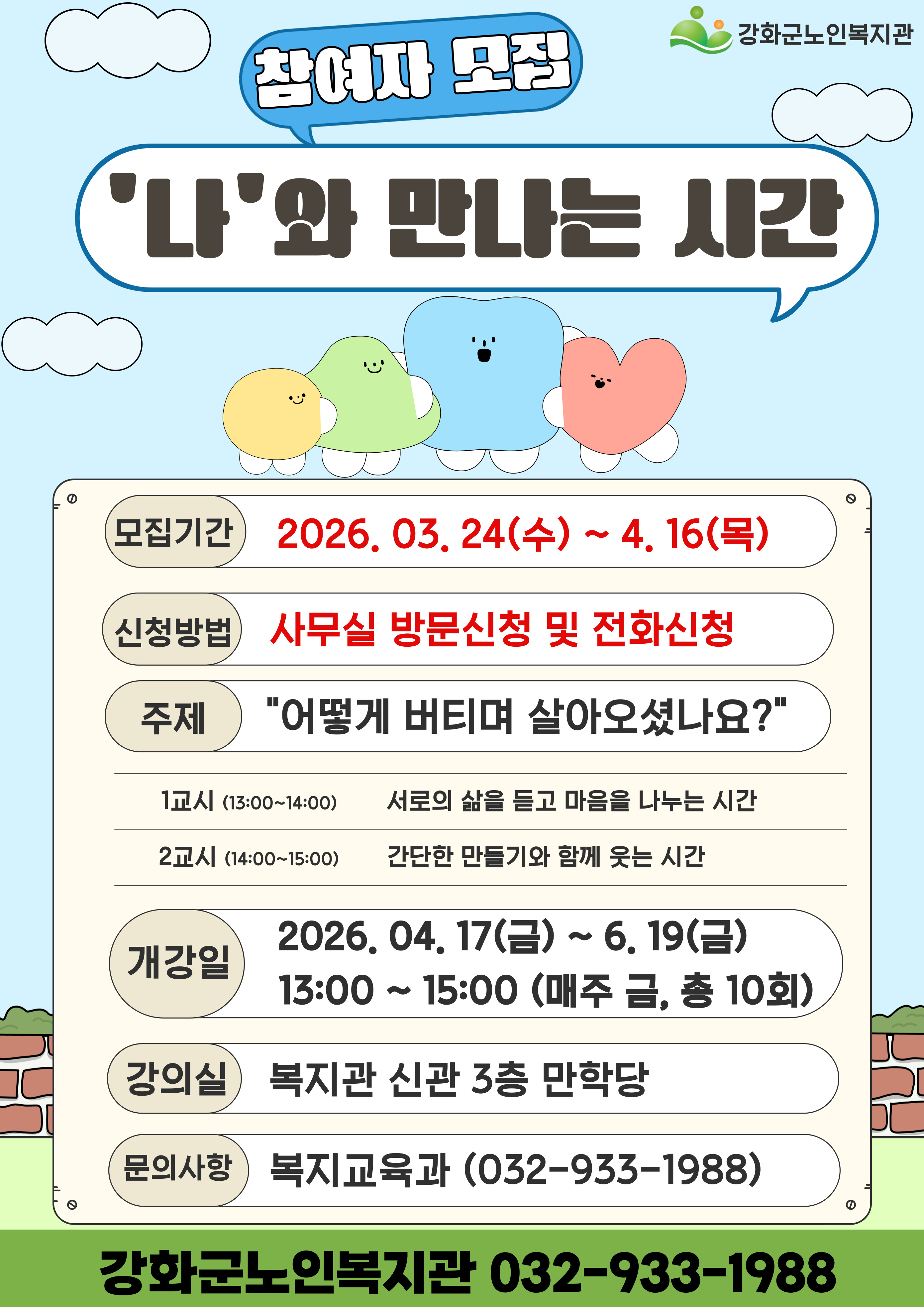 2026년 강화군노인복지관 3월 신입회원 오리엔...