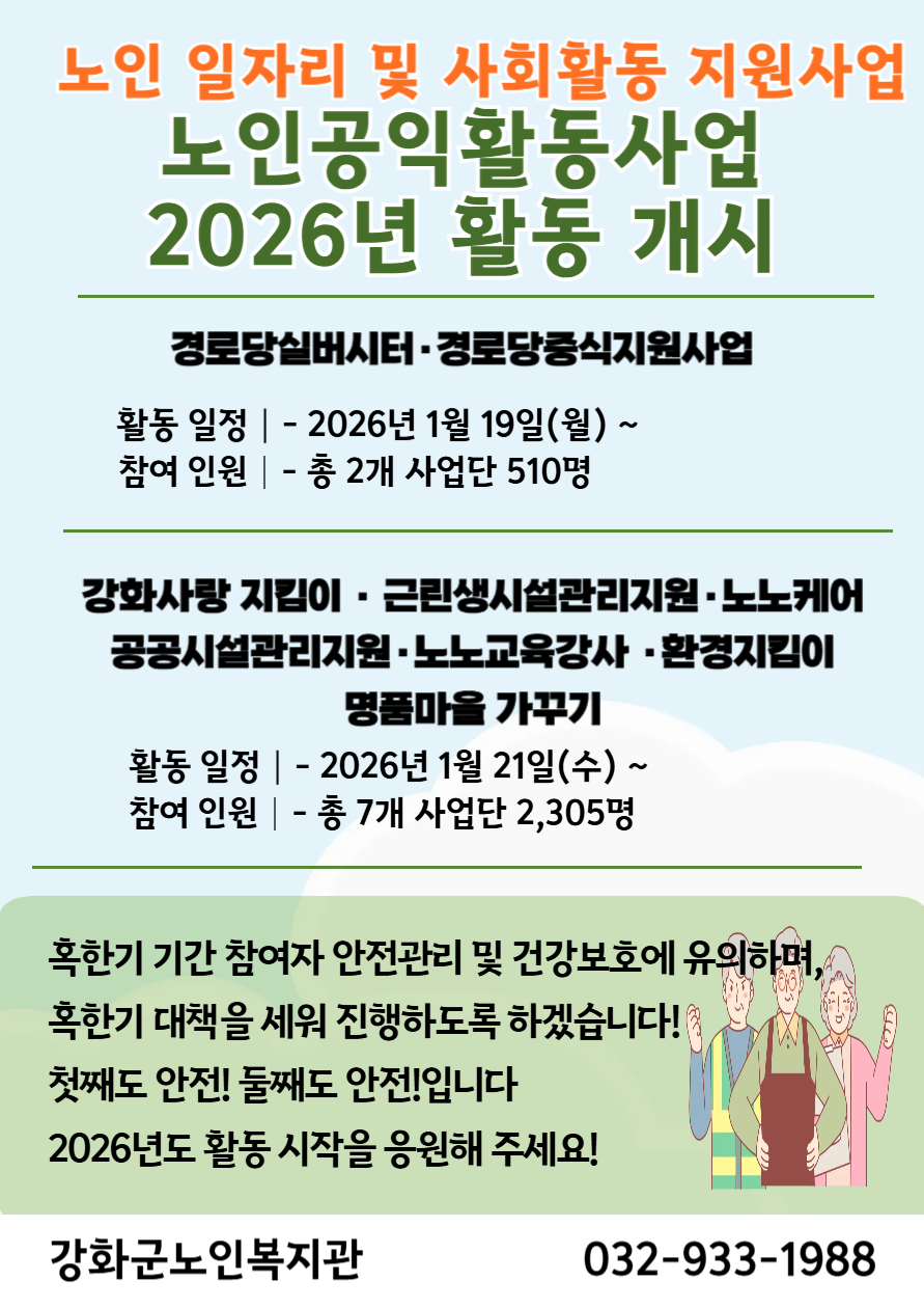 2026년 강화군노인복지관 경로당여가문화보급사...