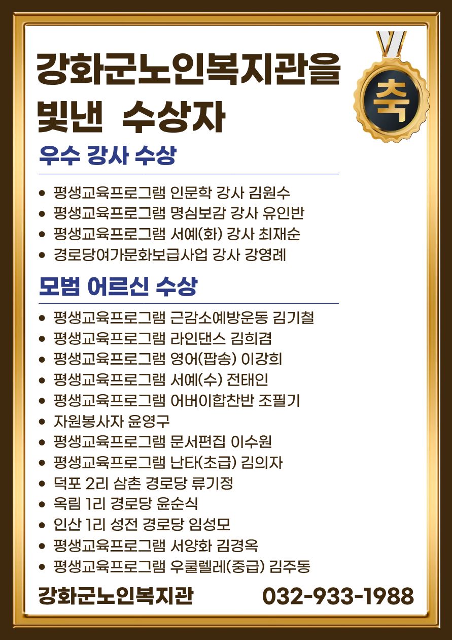 2025년 강화군노인복지관을 빛낸 어르신들입니다!