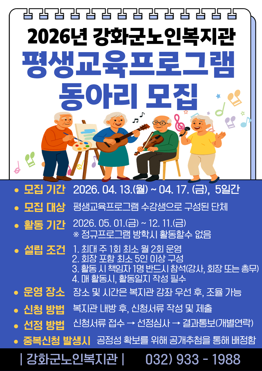 2026년 평생교육프로그램 동아리 모집